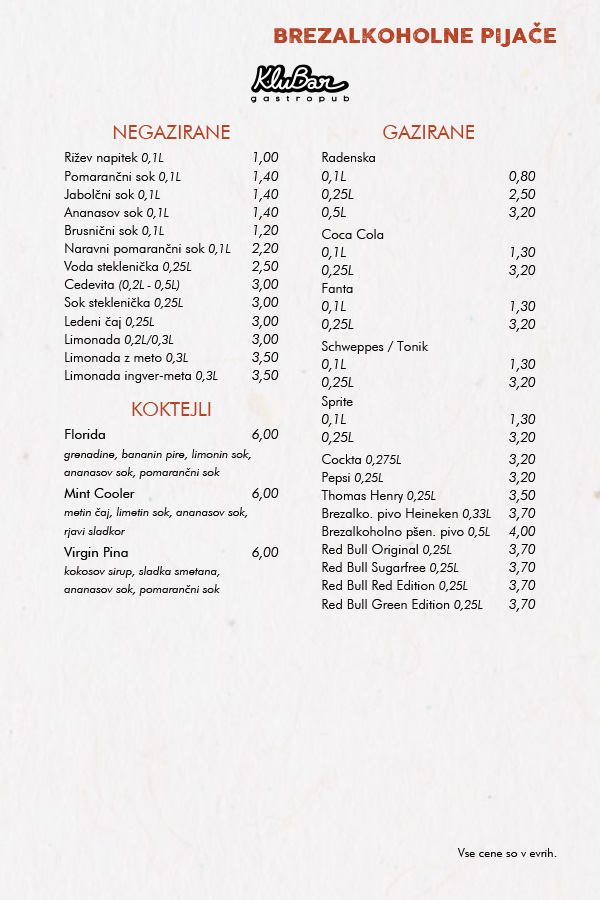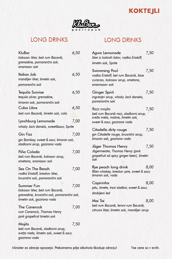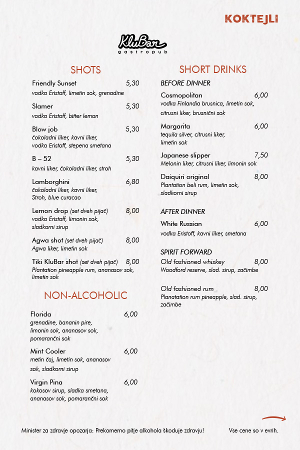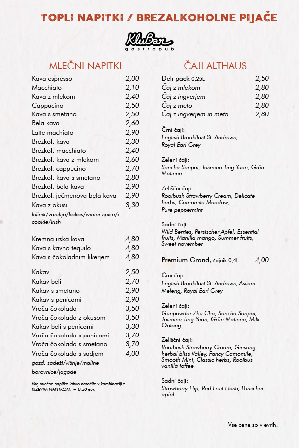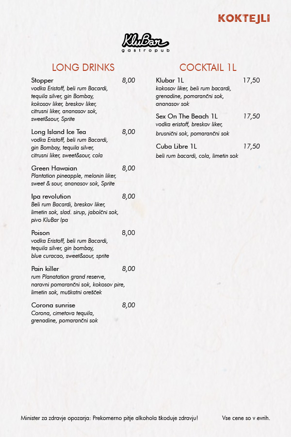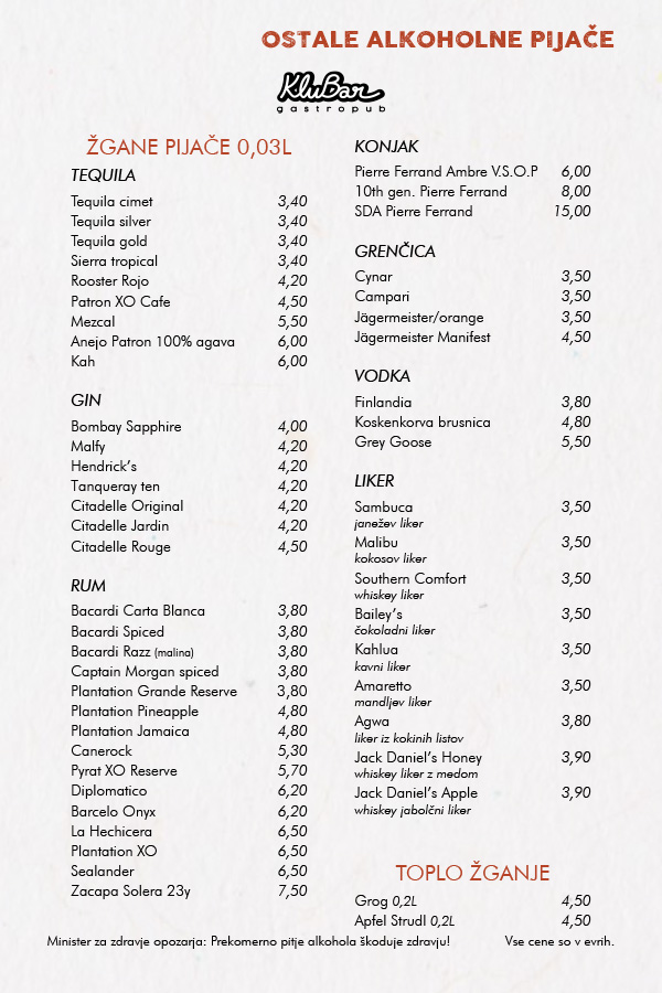 OB PETKIH, SOBOTAH, NEDELJAH IN OB IZREDNIH DOGODKIH SE OD 21. URE CENE PODRAŽIJO ZA 0,5€!